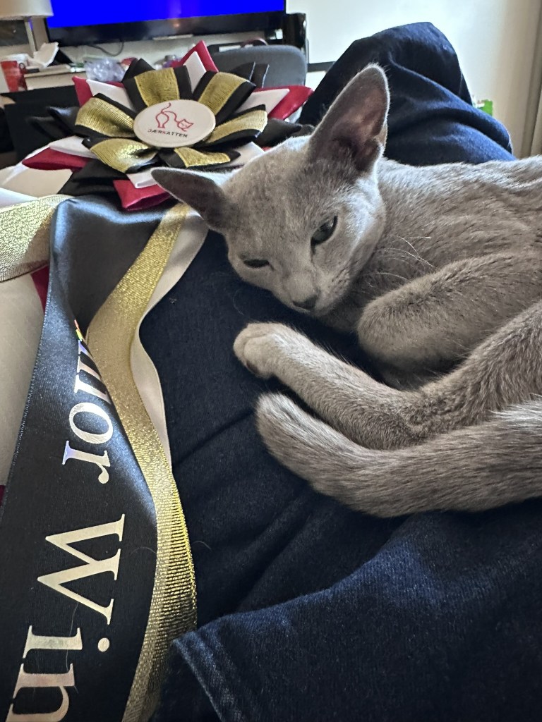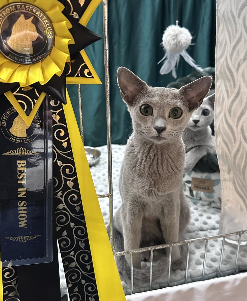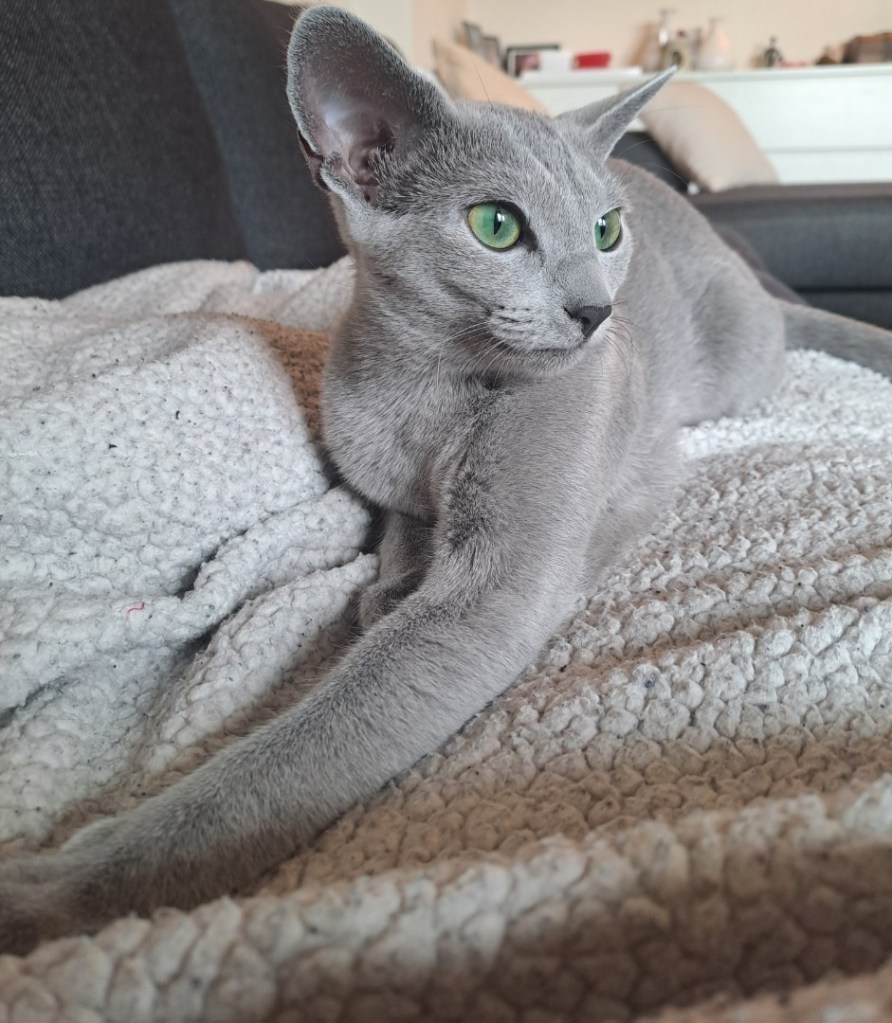 Take a closer look at our beautiful Russian Blue female Peach. Select a photo to enlarge and enjoy her gallery.