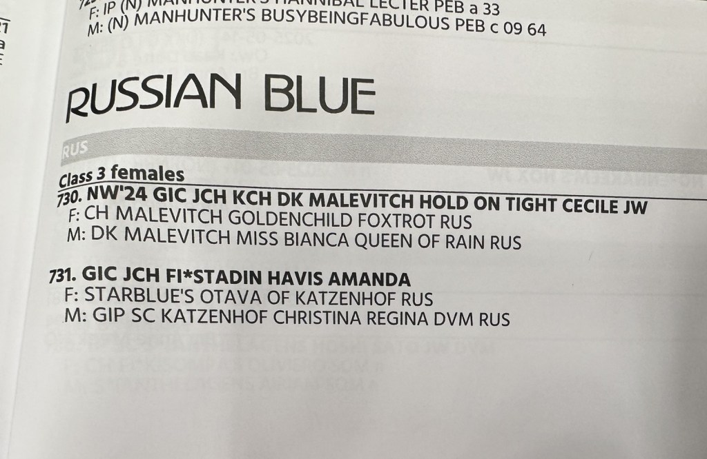 Our judge for the weekend was Mirosław Skotarczyk (Poland), and Furbonacci was represented by CC and Malcolm among nine Russian Blues.